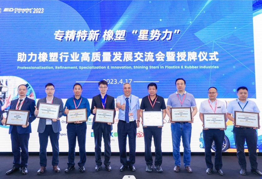 本屆CHINAPLAS的全新同期活動,首屆“專精特新 橡塑‘星勢力’助力橡塑行業(yè)高質(zhì)量發(fā)展交流會暨授牌儀式”于展會首日4月17日在現(xiàn)場舉行?;顒拥呐e辦目的是響應(yīng)國家“十四五”規(guī)劃提到推動“專精特新”企業(yè)發(fā)展的方向。