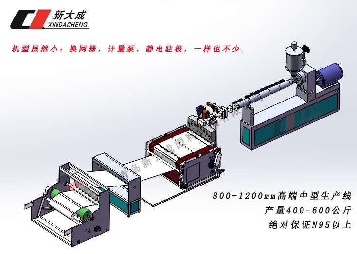 為此新大成隆重推出:高端中型800-1200mm熔噴布設(shè)備,該生產(chǎn)線產(chǎn)量在400-600kg,新大成技術(shù)團(tuán)隊(duì)嚴(yán)密把關(guān)噴絲模具,可滿足過濾級別95以上標(biāo)準(zhǔn)。